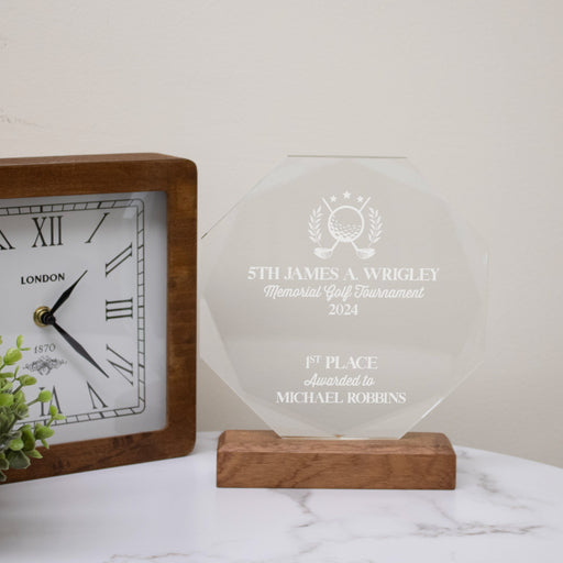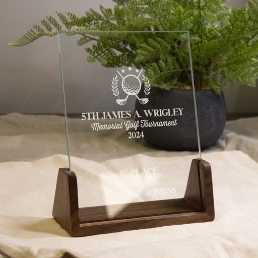 Celebrate the winner of your organization's golf event with this sleek and custom trophy!Crafted of quality crystal with a wooden base, this golf c...