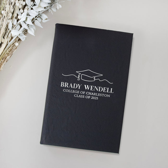 Celebrate the graduate in your life with a personalized graduation journal. Engraved with a graduation cap and customized with the graduate’s name, school, and class year, this journal is a one-of-a-kind keepsake that reflects their unique journey.