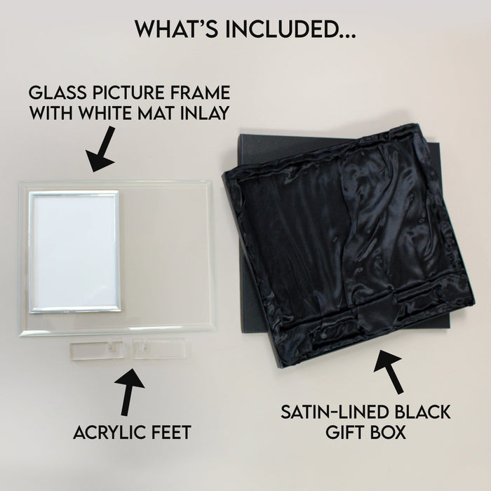 This glass memorial picture frame is engraved with the words, “Son, your loss is immeasurable, but so is the love you left behind,” and personalized with his name.