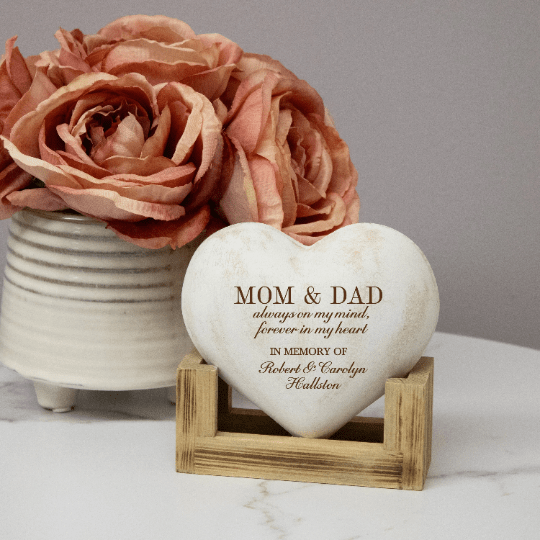 Honor the memory of Mom and Dad with this heartfelt wooden heart keepsake.