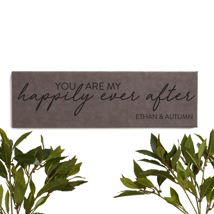 This charming wall sign features the heartfelt message, 'You are my happily ever after,' and is personalized with the couple’s names. A sweet and thoughtful gift, it's perfect for Valentine's Day or an anniversary with your spouse or partner.