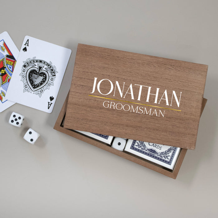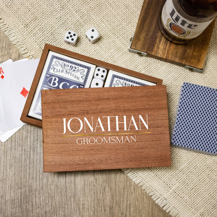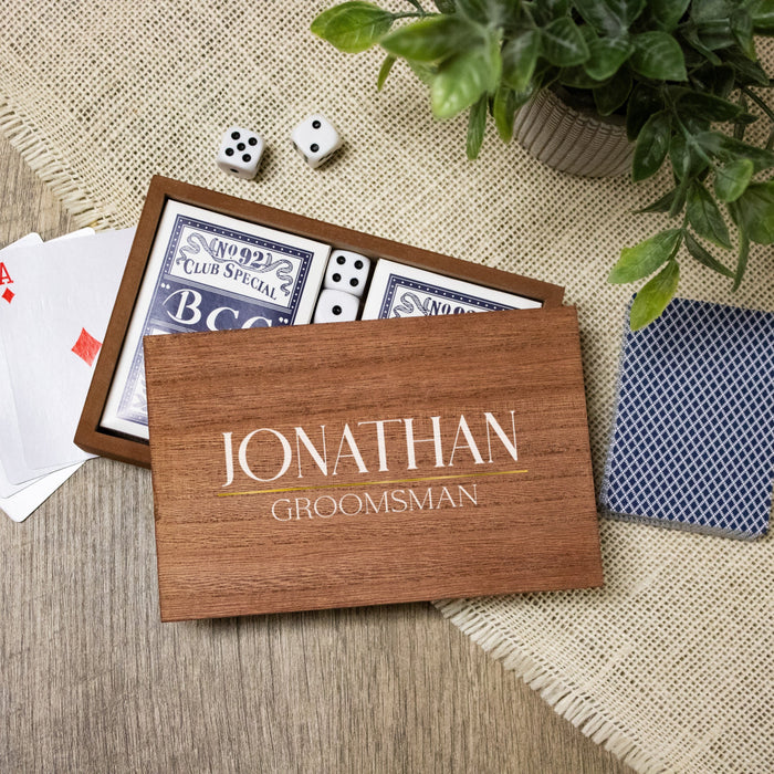 Your groomsmen will appreciate a gift that’s personal, practical, and memorable—just like this custom playing card and dice box.