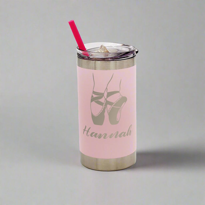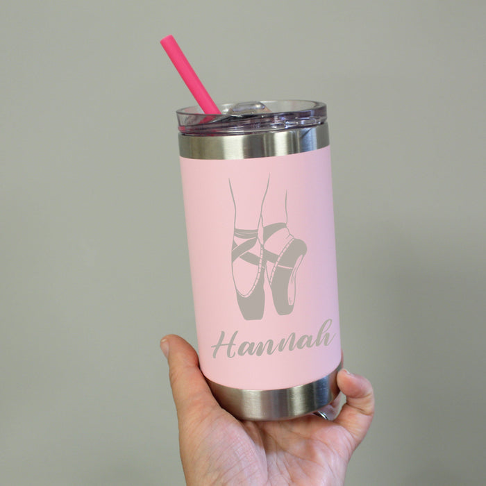 Perfect for your little dancer, this 12oz pink stainless steel tumbler is engraved with a delicate ballerina design and personalized with her name. Featuring a kid-friendly silicone straw and sized just right for small hands, it’s a fun and practical way to keep her drinks cool—whether she’s at dance class or on the go!