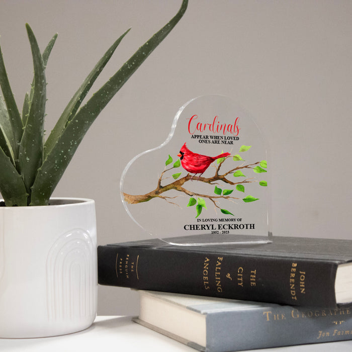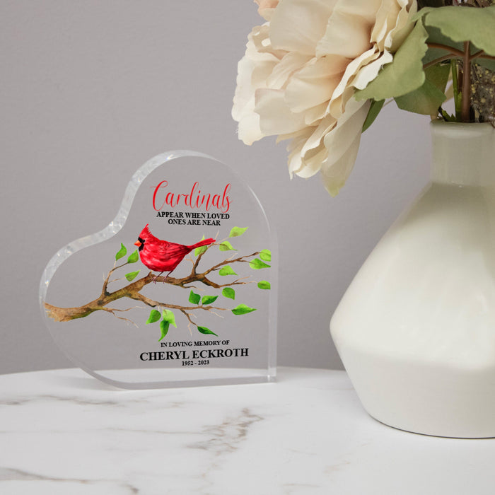 Personalized "Cardinals Appear..." Memorial Heart Keepsake