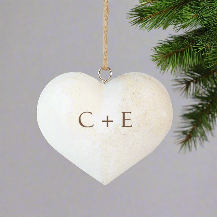 Beautifully crafted with expert detail, this 3D heart ornament is custom engraved with the couple’s initials.