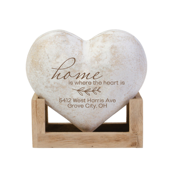 Engraved with the heartfelt quote "Home is Where the Heart Is," this wood composite heart is customized with their home address.