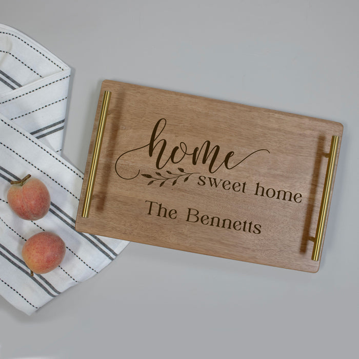 This personalized wooden serving tray makes a thoughtful and stylish housewarming gift!
