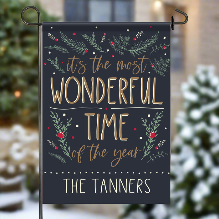 Personalized "Most Wonderful Time of Year" Christmas Garden Flag Sign