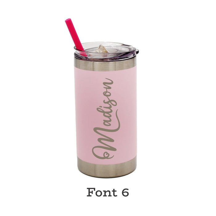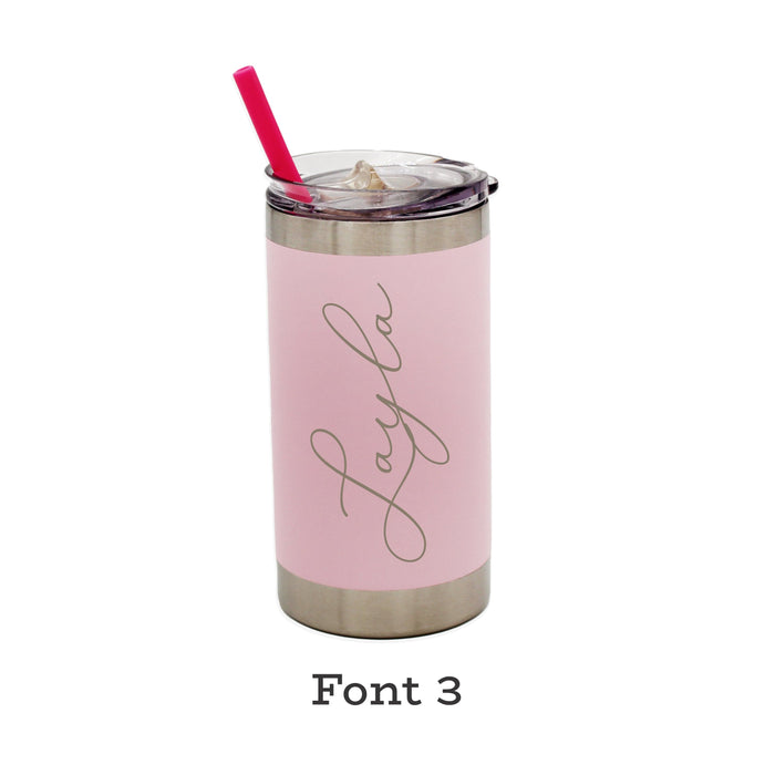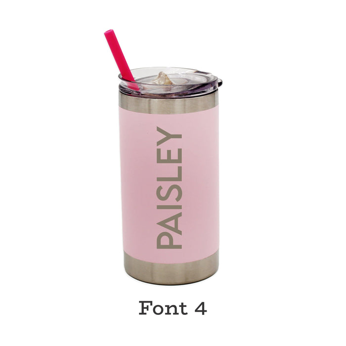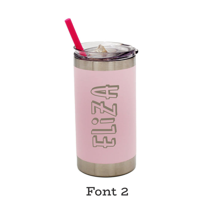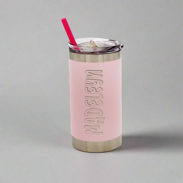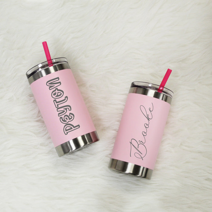 Make hydration fun and personal with this 12oz pink stainless steel tumbler, custom engraved with her name in your choice of font. Designed just for kids, it’s perfectly sized for small hands and includes a soft silicone straw—making it a stylish and practical companion for school, playdates, and everyday adventures.