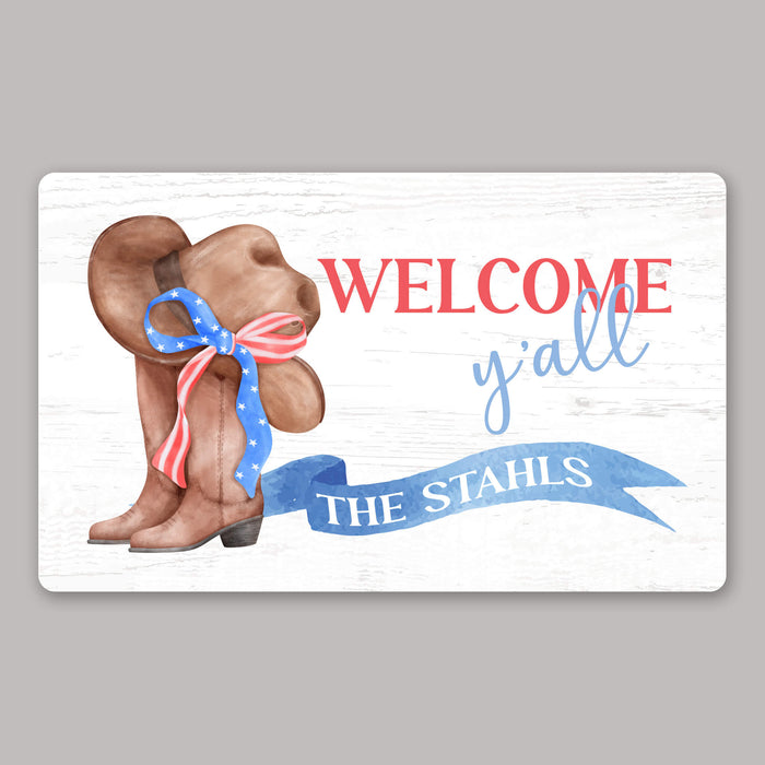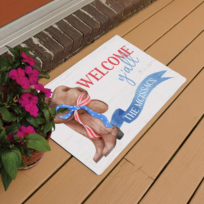 Personalized Patriotic Welcome Y'All Doormat