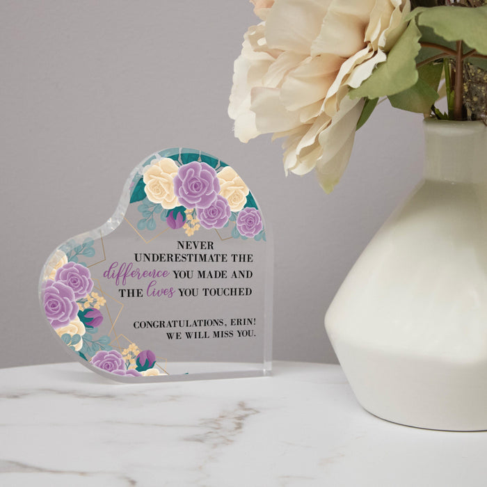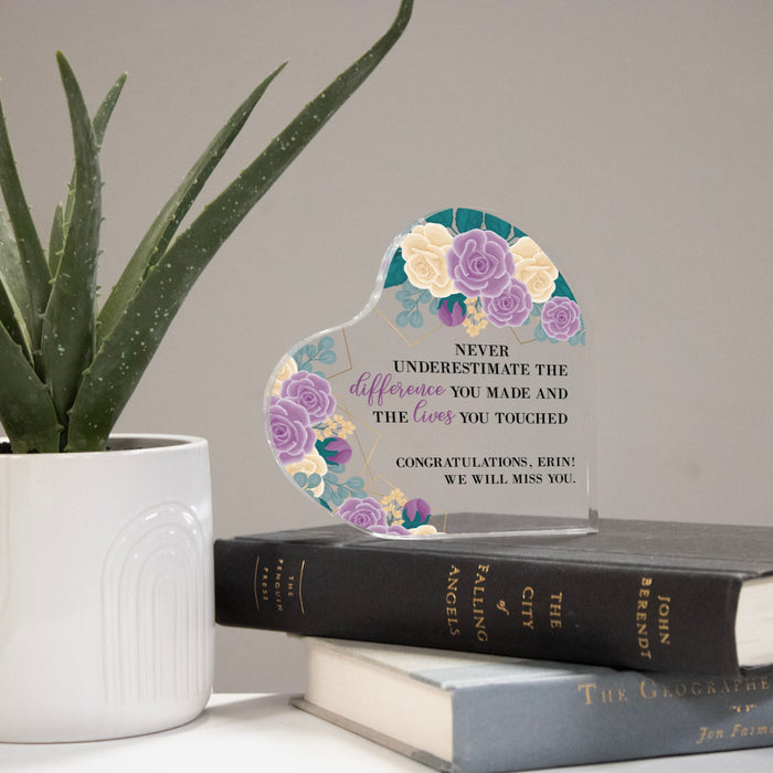 Engraved with the inspiring message, "Never underestimate the difference you made or the lives you've touched," it can be personalized with your own short message.
