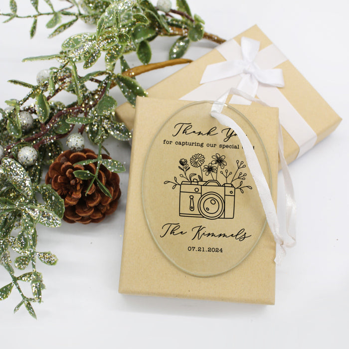 Packaged in a gift box, this Photographer Thank You ornament is a must-have Christmas gift for the people who played a memorable role on your special day.